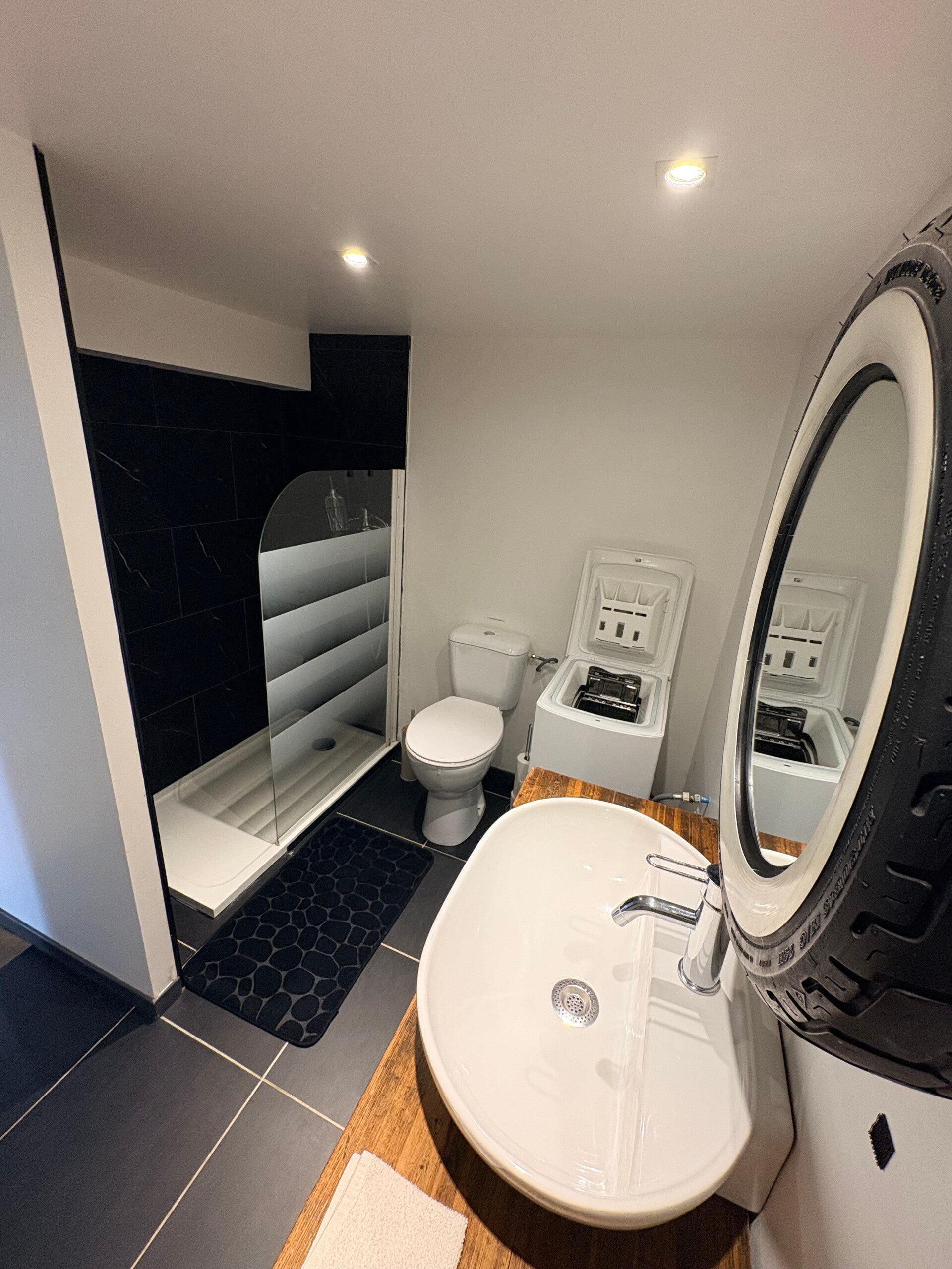 La salle d’eau est pensée pour votre confort : WC, machine à laver et sèche-cheveux sont à votre disposition.