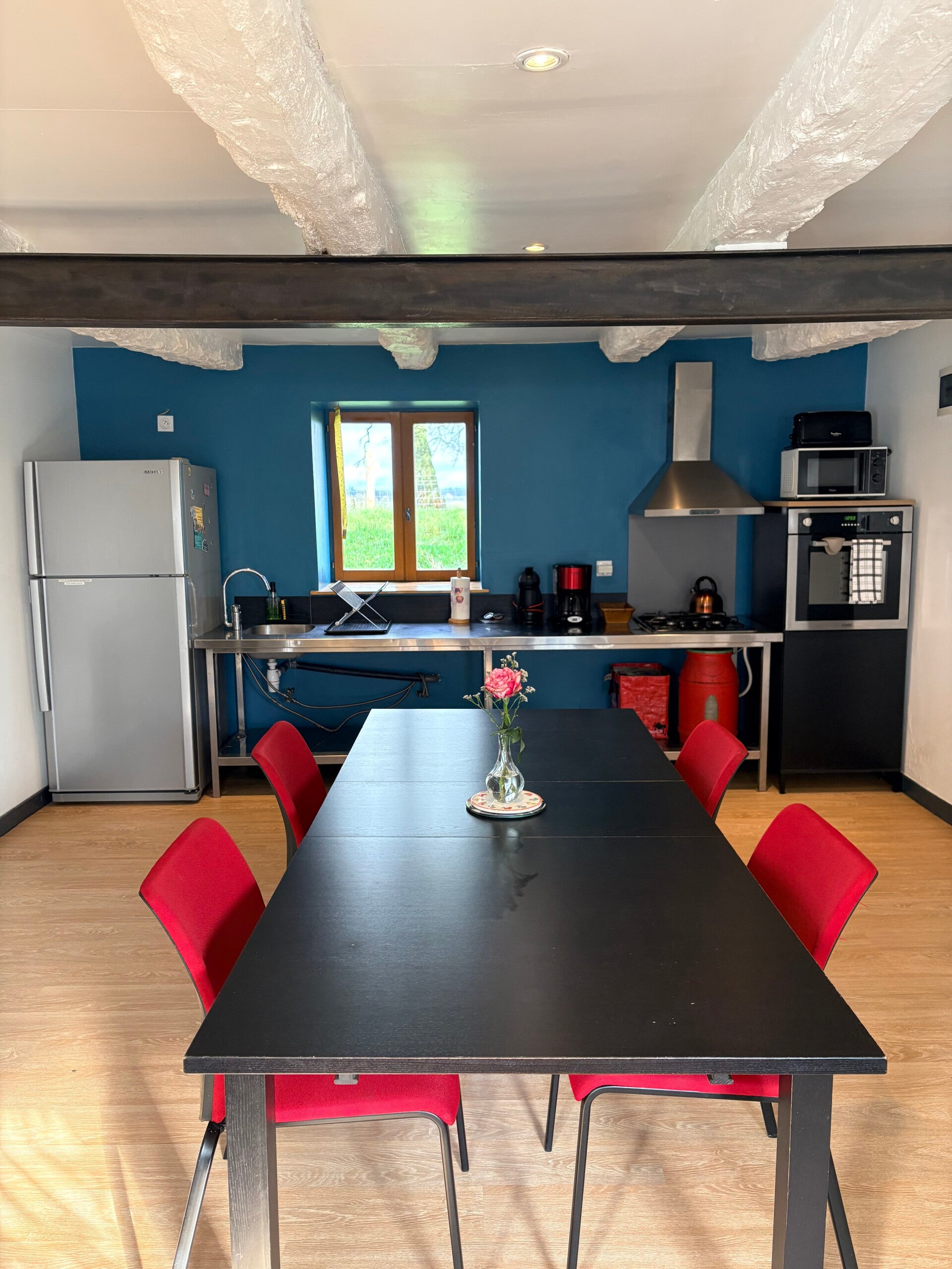 Il est situé dans le prolongement de notre longère, attenant mais totalement indépendant, et dispose de sa propre entrée privative, garantissant calme et intimité.